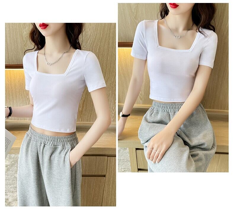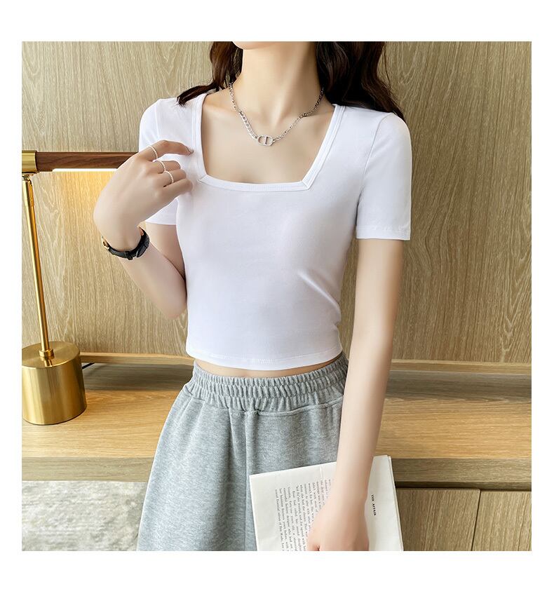 トップス Tシャツ 白シャツ 白トップス ショート丈 袖なし 半袖 スクエアネック スリム タイト 綿 PU 大人可愛い シンプル カジュアル おしゃれ かっこいい 主役級 存在感 無地 春 夏 10代 20代 30代 レディース 女性用 デート お出かけ 公園デビュー 女子会 休日 運動 ジム ヨガ リゾート 旅行 着回し 普段使い 重ね着 韓国系 オルチャン ファッション S M L XL 2XL ホワイト ブラック グレー ダークグレー オレンジ ブルーグレー グリーン ブルー イエロー レッド