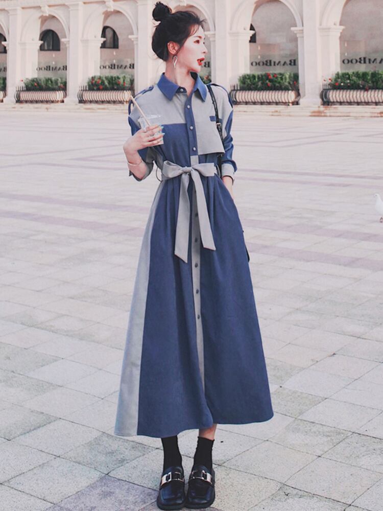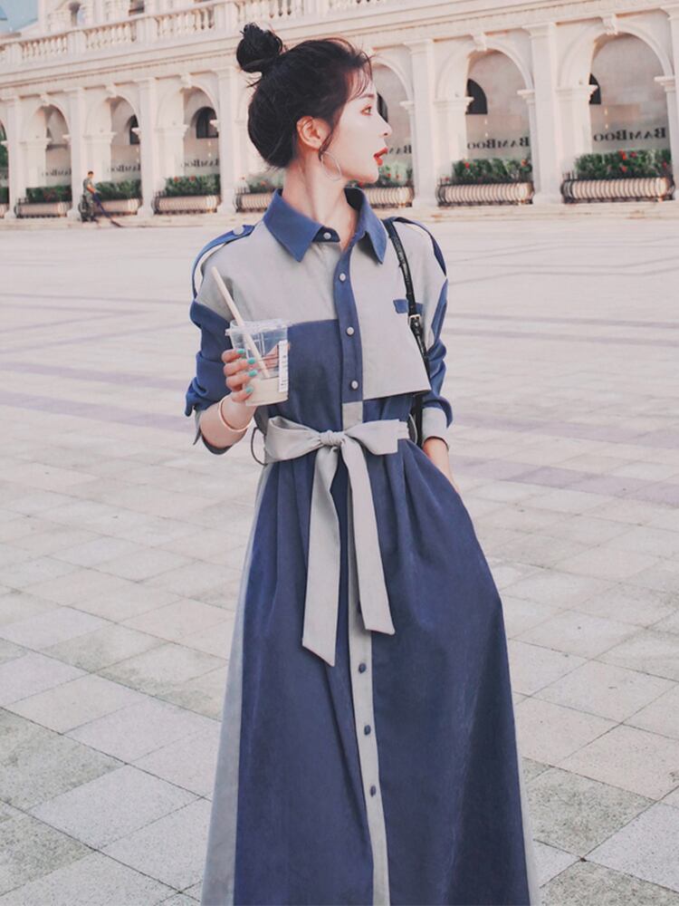ワンピース ドレス シャツワンピース ワンピドレス ロング ロング丈 長袖 ストレート Aライン 切り替えデザイン リボン ウエストリボン ハイウエスト 前開き ボタン 薄手 コーデュロイ かわいい 大人可愛い きれいめ 大人 おしゃれ お洒落 レトロ 大人女子 こなれ感 ラフ キュート ガーリー ルーズ 無地 春 秋 10代 20代 30代 レディース 女性用 デート お出かけ 女子会 休日 パーティー イベント リゾート 旅行 普段使い ファッション コーデ スタイル S M L XL 2XL 青