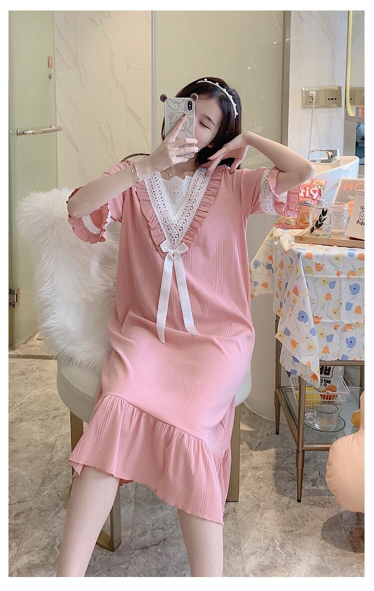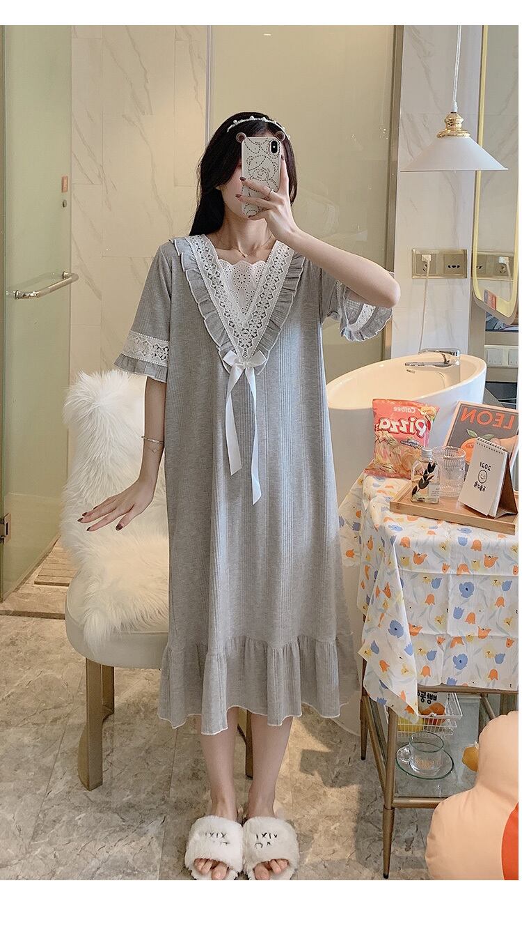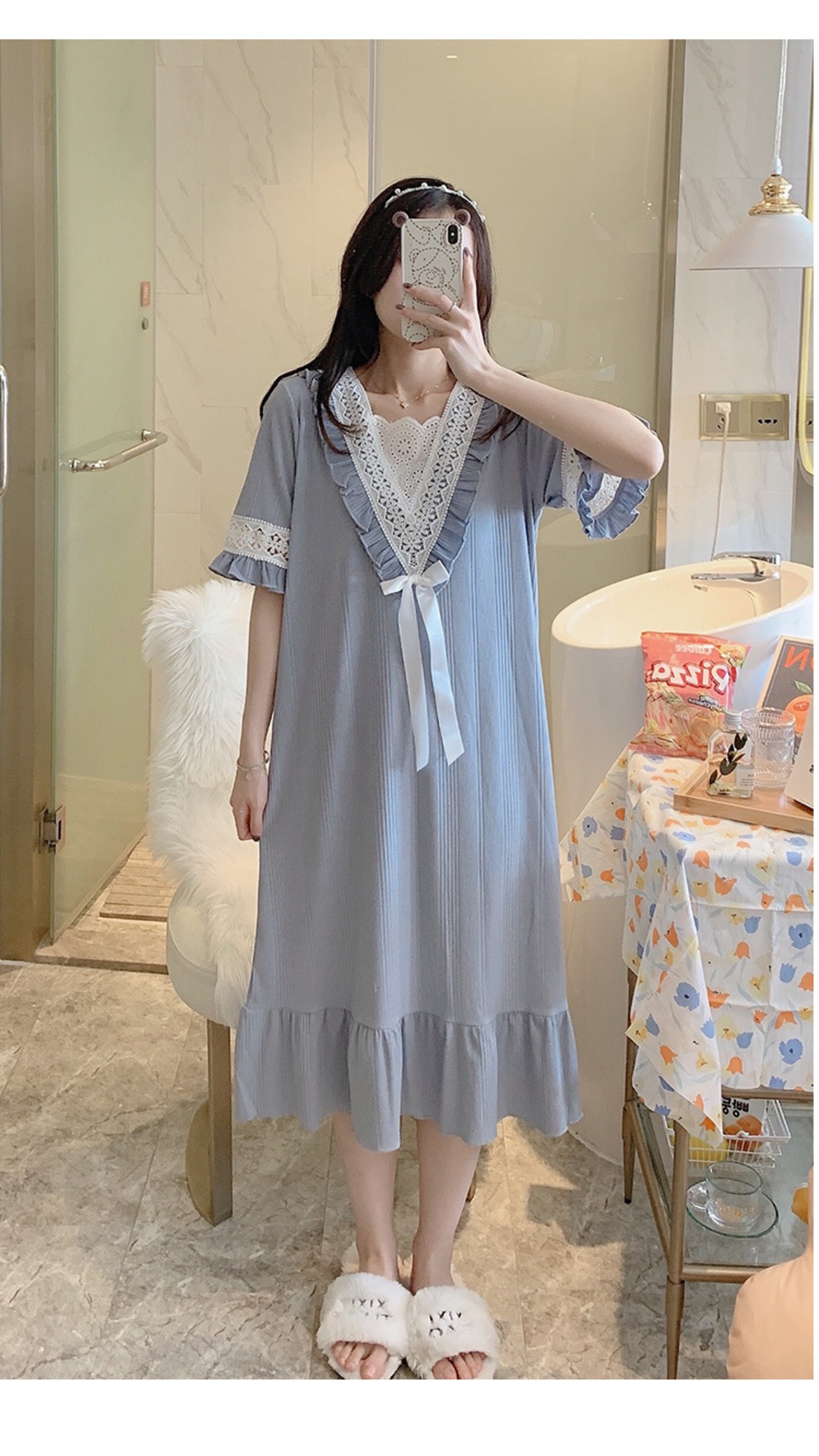 4色カラバリ5分袖ミモレ丈ネグリジェワンピース。