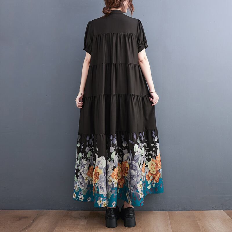 ワンピース ティアードワンピース ワンピドレス マキシ丈 袖あり 半袖 パフスリーブ 襟なし スタンドカラー フレア ワイド 大人可愛い シンプル カジュアル おしゃれ 大人女子 こなれ感 ガーリー ルーズ 個性的 主役級 存在感 無地 柄 花柄 春 夏 秋 10代 20代 30代 40代 レディース 女性用 デート お出かけ 女子会 休日 パーティー イベント リゾート 旅行 ホテル レストラン 着回し 普段使い 韓国系 オルチャン ファッション コーデ スタイル 体系カバー フリーサイズ ブラック