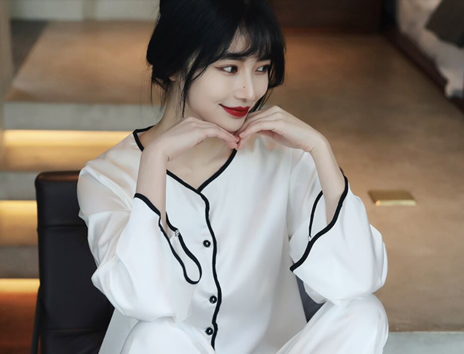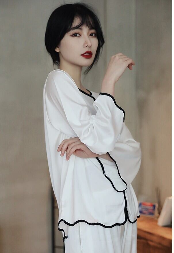 ルームウェア レディース パジャマ 部屋着 2点セット 上下セット セット パンツ 長ズボン M L XL ピンク ホワイト 白 ブラック 黒 パステルカラー シャーベットカラー 大人カラー モノトーン バイカラー パイピング 無地 長袖 フロントボタン リラックス ロング丈 ロング ゆったり ゆる ルーズ 体型カバー ナチュラル ガーリー フェミニン キュート 大人可愛い 大人 お泊り 存在感 主役級 さわやか シンプル ベーシック 定番 王道 学生 韓国 オルチャン 光沢感 上品 エレガント きれいめ