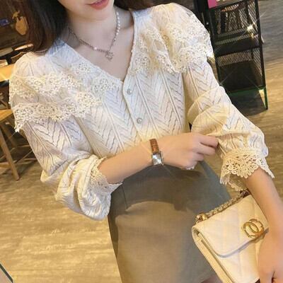 秋 シック パフスリーブ トップス ブラウス プルオーバー 上着 ショート丈 袖あり 長袖 パフスリーブ Vネック 襟付き スリム ストレート レギュラー レース 刺繍 前開き ボタン 異素材MIX かわいい 大人可愛い カジュアル おしゃれ レトロ 大人女子 こなれ感 キュート モダン 無地 秋 冬 10代 20代 レディース 女性用 ママ 女の子 オフィス ビジネス OL 通勤 学生 通学 デート 女子会 休日 イベント レストラン 普段使い スタイル インスタ映え S M L XL アプリコット