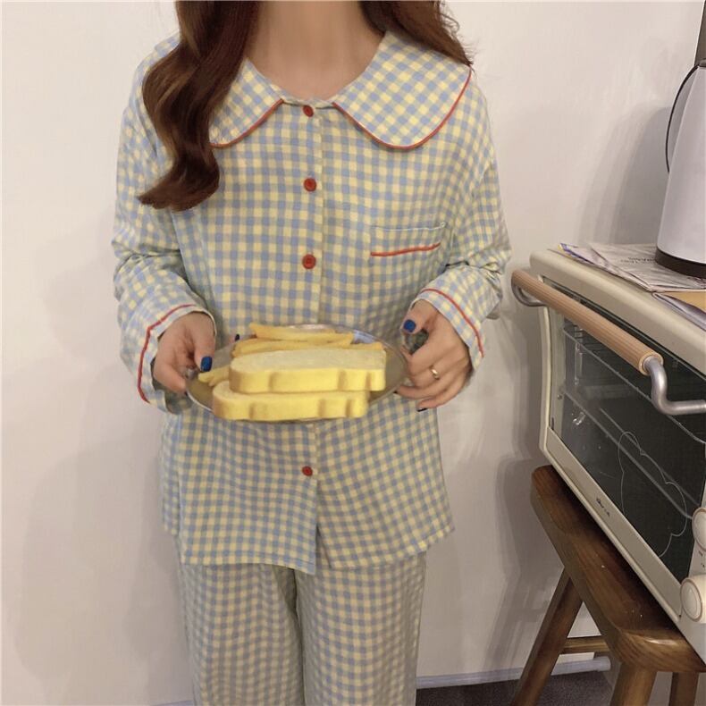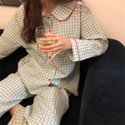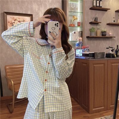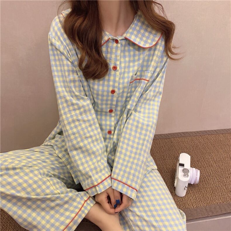パジャマ 上下セット チェック柄 レディース 長袖 長ズボン 2点セット ルームウェア 部屋着 前開き ウエストゴム 格子柄 緑 グリーン ブルー 青 水色 薄手 オールシーズン 春 秋 冬 リラックス 旅行 お泊り 女子会 モテ 修学旅行 ゆったり 大きめ 大きいサイズ М L XL 2XL かわいい 大人可愛い 大人女子 ガーリー 清楚 お洒落 オシャレ ラフ カジュアル ワイド 体型カバー 着痩せ 細見え 20代 30代 40代 韓国 トレンド 流行 プレゼント 映え カラフル レトロ こなれ感 襟