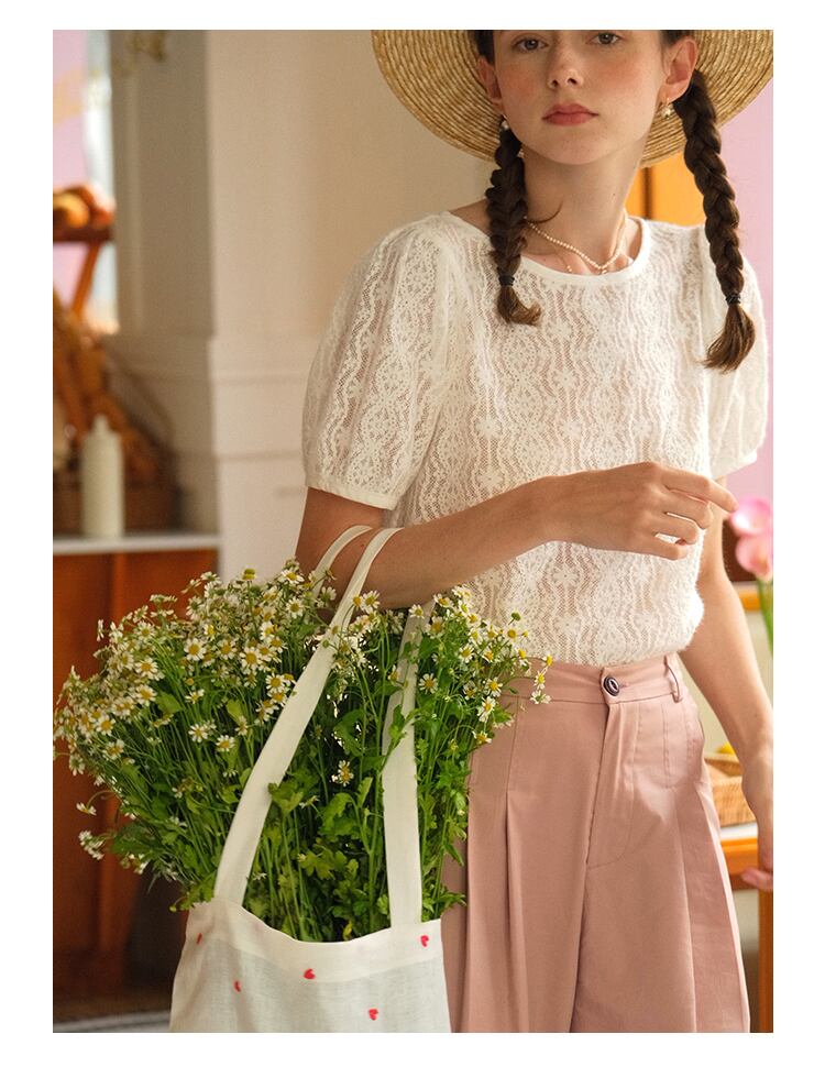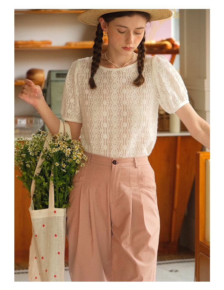 夏 パフスリーブ レース トップス レース Tシャツ シャツ ショート丈 袖あり 半袖 ラウンドネック 襟なし ストレート レギュラー レース ふわふわ 透け感 シースルー ポリエステル 異素材MIX 大人可愛い きれいめ 大人 上品 お洒落 レトロ 大人可愛い こなれ感 ラブリー モダン 無地 夏 20代 30代 レディース 女性用 ママ 女の子 オフィス ビジネス OL 通勤 学生 通学 女子会 パーティー イベント レストラン 普段使い スタイル 楽ちん インスタ映え S M ホワイト