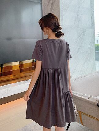 ワンピース ミドル丈 半袖 ラウンドネック 綿 かわいい 大人可愛い きれいめ シンプル カジュアル 大人 上品 おしゃれ お洒落 レトロ 大人女子 こなれ感 ラフ ルーズ 個性的 クール 無地 夏 20代 30代 レディース ママ マタニティ お出かけ 女子会 休日 旅行 海 プール 高原 ホテル ガーデン レストラン 普段使い ファッション コーデ スタイル 楽ちん M L XL 2XL ゆったり ゆる 黒 グレー