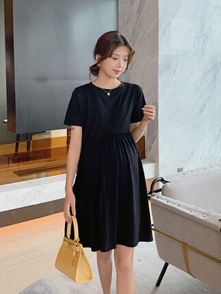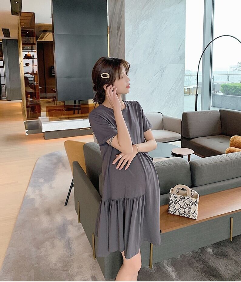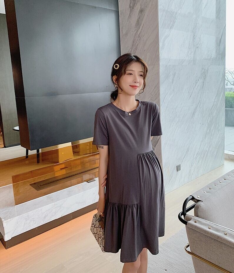マタニティに優しい半袖ワンピ。