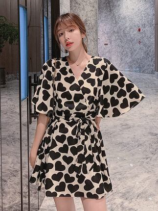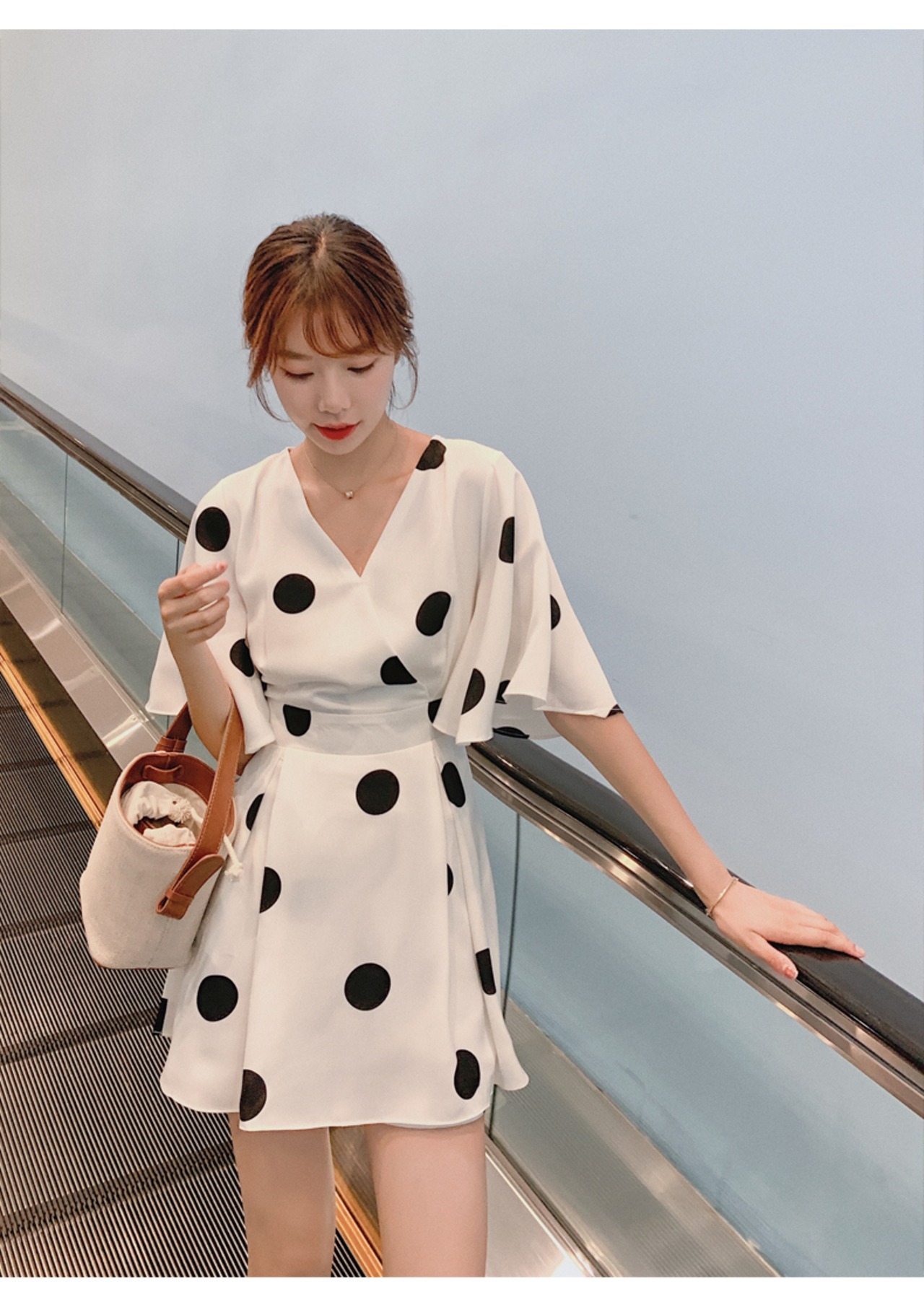 ワンピース プルオーバー プリーツスカート ショート ショート丈 膝上 半袖 Vネック フレア スリム 細身 シフォン フリル リボン ウエストゴム ポリエステル かわいい 大人可愛い カジュアル 大人 おしゃれ お洒落 ラブリー キュート 柄 フラワー ドット柄 水玉 夏 10代 20代 レディース デート 女子会 休日 リゾート 旅行 海 プール 高原 ホテル ガーデン レストラン 普段使い 重ね着 韓国 韓国系 ファッション コーデ スタイル インスタ映え M L XL 2XL 白 黒