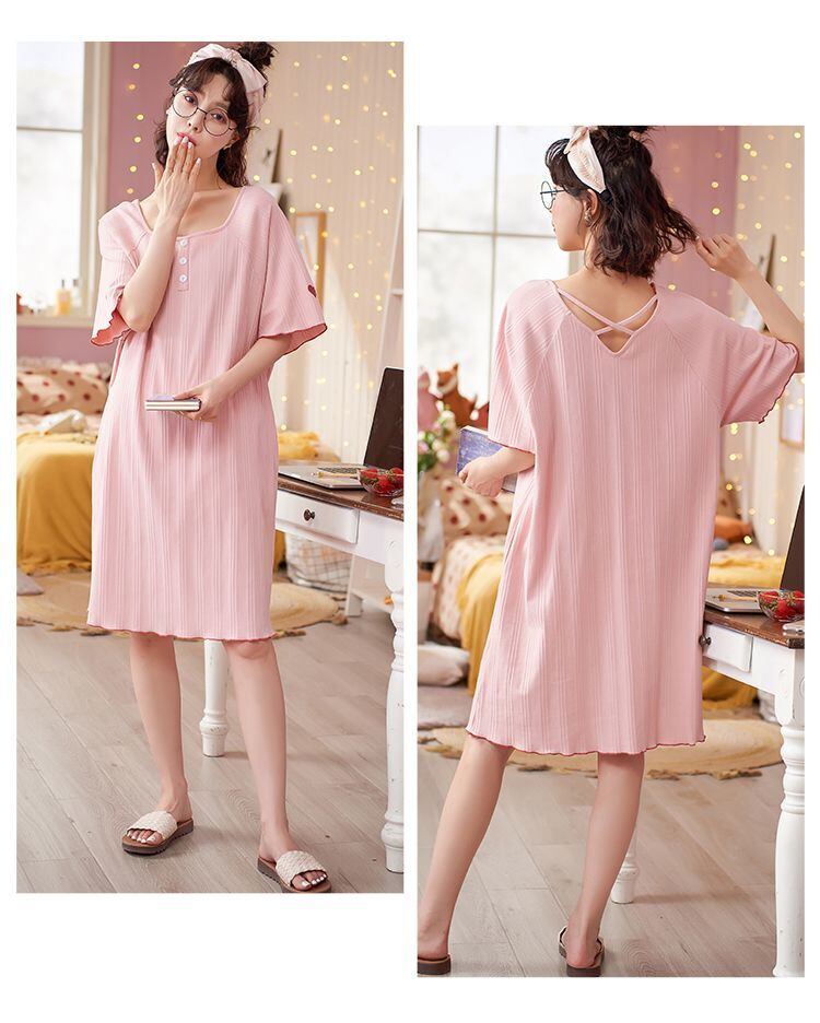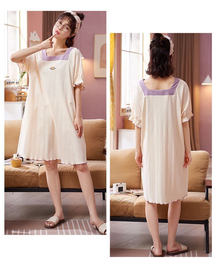 5色カラバリ膝上丈半袖ネグリジェワンピース。