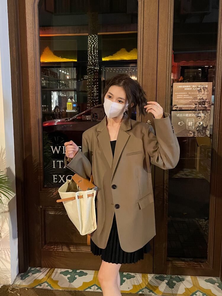 秋 スーツ ジャケット トップス アウター ジャケット 上着 スーツ ミディアム丈 袖あり 長袖 Vネック 襟付き シングルブレスト レギュラー ポケット 前開き ボタン ポリエステル 異素材MIX 大人可愛い カジュアル 大人 お洒落 レトロ 大人女子 メンズライク モード系 無地 春 秋 レディース 女性用 ママ 女の子 オフィス ビジネス OL 通勤 学生 通学 女子会 パーティー イベント ホテル 普段使い ファッション 暖かい インスタ映え S M L ブラック ブラウン
