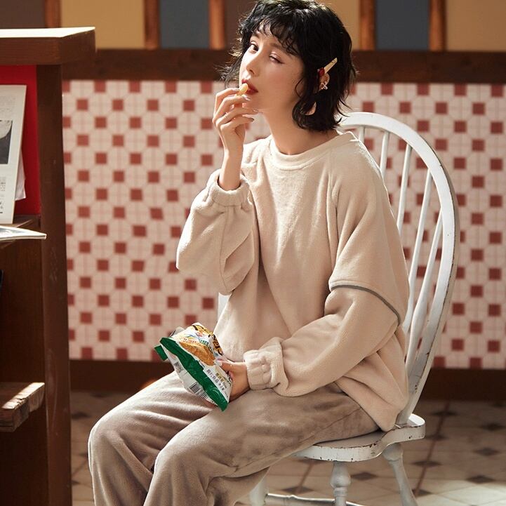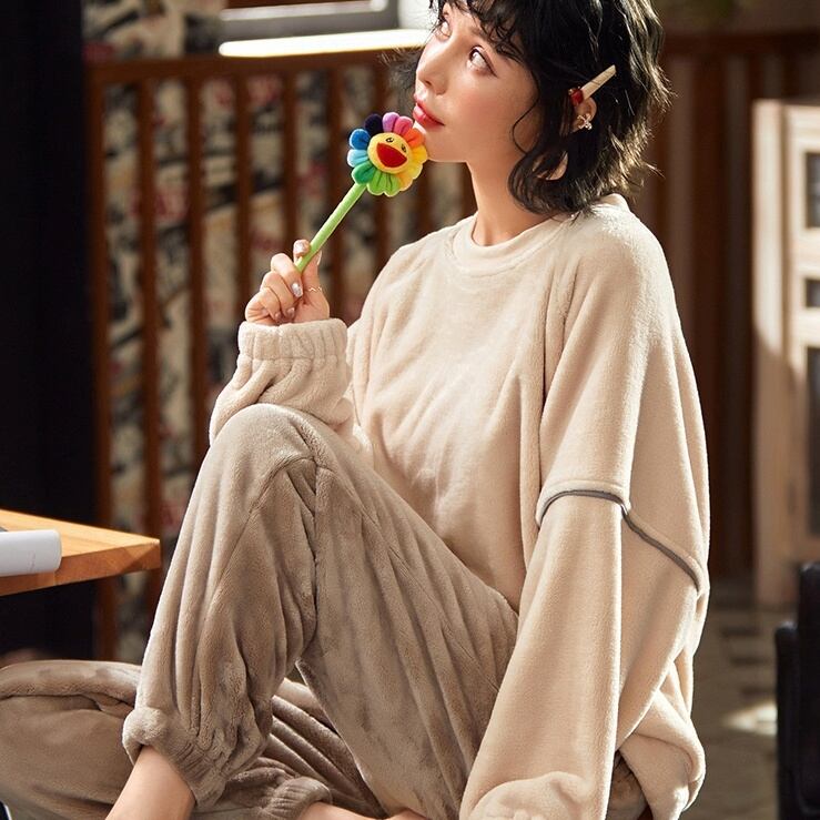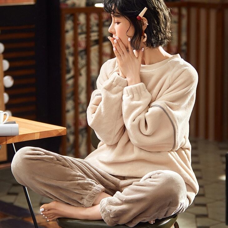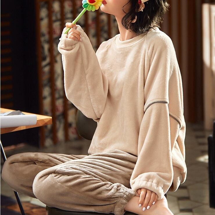パジャマ 3種類 長袖 上下セット 厚手 冬 レディース モコモコ くすみカラー 長ズボン ふわふわ 暖かい 防寒 冷え性 大きいサイズ 大きめ ゆったり 体型カバー 細見え 着痩せ М L XL 2XL 2点セット トップス トレーナー パンツ ズボン ウエストゴム ベージュ アプリコット ピンク 青 ブルー 裏起毛 かわいい 大人可愛い お洒落 オシャレ シンプル ラフ カジュアル ルームウェア 部屋着 ポケット 寝巻 オーバーサイズ 20代 30代 40代 50代 スウェット 無地 ラウンドネック