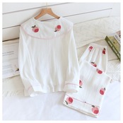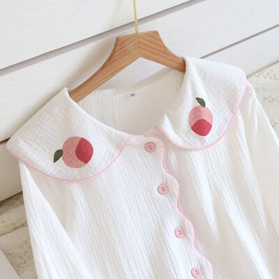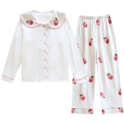 パジャマ 上下セット ピーチ 長袖 レディース スカラップ 丸襟 桃 かわいい 大人可愛い ガーリー キュート 白 ピンク ホワイト ルームウェア 寝巻 リラックス 部屋着 お洒落 オシャレ 20代 30代 40代 ポップ 量産型 ロリータ 姫系 大きいサイズ 大きめ ゆったり М L XL 2点セット レトロ 個性派 個性的 パンツ ズボン シャツ 前開き 旅行 お泊り デート 女子会 綿 コットン 柔らか プレゼント ギフト インスタ映え