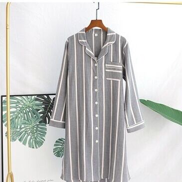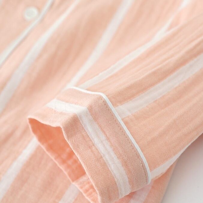 パジャマ ストライプ 上下セット ワンピース レディース 春 夏 秋 薄手 七分袖 ピンク 灰色 グレー オシャレ お洒落 かわいい 大人可愛い 膝丈 膝下 ルームウェア 寝巻 部屋着 リラックス 長袖 シンプル カジュアル きれいめ 上品 シャツワンピース ストレート Iライン 体型カバー 細見え 着痩せ オープンカラー ボーダー くすみカラー 20代 30代 40代 50代 旅行 お泊まり ギフト プレゼント 楽ちん ラフ こなれ感 双子 お揃い レトロ アンティーク ヴィンテージ 涼しい 通気性