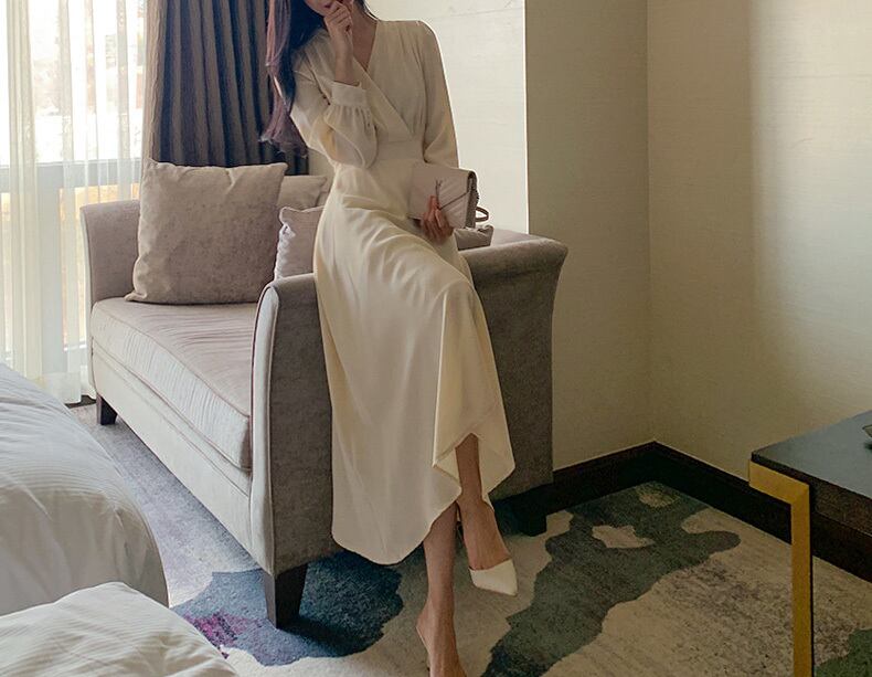秋 ハイウエスト ドレス ドレス ワンピース パーティドレス ロングドレス 舞台ドレス Aラインドレス ワンピドレス ロング丈 袖あり 長袖 Vネック 襟なし Aライン ルーズウエスト ファスナー ハイウエスト 透け感 異素材MIX 大人可愛い 上品 お洒落 大人女子 ルーズ エレガント フォーマル カジュアル お嬢様 無地 20代 30代 レディース 女性用 ママ 女の子 OL 通勤 学生 デート 女子会 パーティー イベント レストラン ファッション インスタ映え 秋 S M L XL アプリコット
