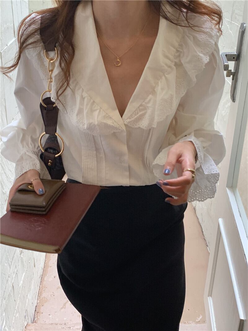 秋 フレンチ レース トップス ブラウス 上着 白トップス ショート丈 袖あり 長袖 Vネック 襟付き スリム レース フリル 透け感 ボタン ポリエステル 異素材MIX 大人可愛い カジュアル 大人 上品 お洒落 レトロ 大人女子 こなれ感 ラブリー エレガント 無地 秋 20代 30代 レディース 女性用 ママ 女の子 オフィス ビジネス OL 通勤 学生 通学 デート 女子会 休日 イベント リゾート 旅行 レストラン 普段使い コーデ モテ インスタ映え ワンサイズ ホワイと
