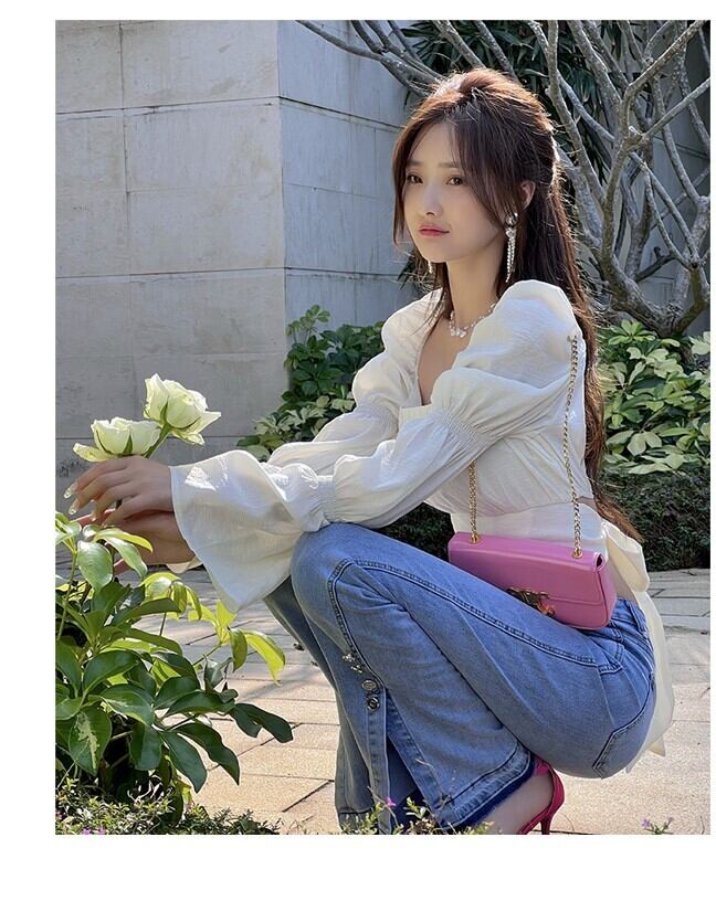 トップス シャツ ブラウス プルオーバー 白シャツ 長袖 パフスリーブ Vネック リボン バックリボン かわいい 大人可愛い きれいめ シンプル 大人 上品 おしゃれ お洒落 大人女子 こなれ感 ラブリー キュート ガーリー ルーズ 個性的 セクシー エレガント 主役級 存在感 抜け感 無地 春 秋 10代 20代 レディース デート お出かけ 女子会 休日 パーティー イベント リゾート 旅行 ホテル ガーデン レストラン 普段使い ファッション コーデ スタイル 楽ちん S M L 白 ホワイト