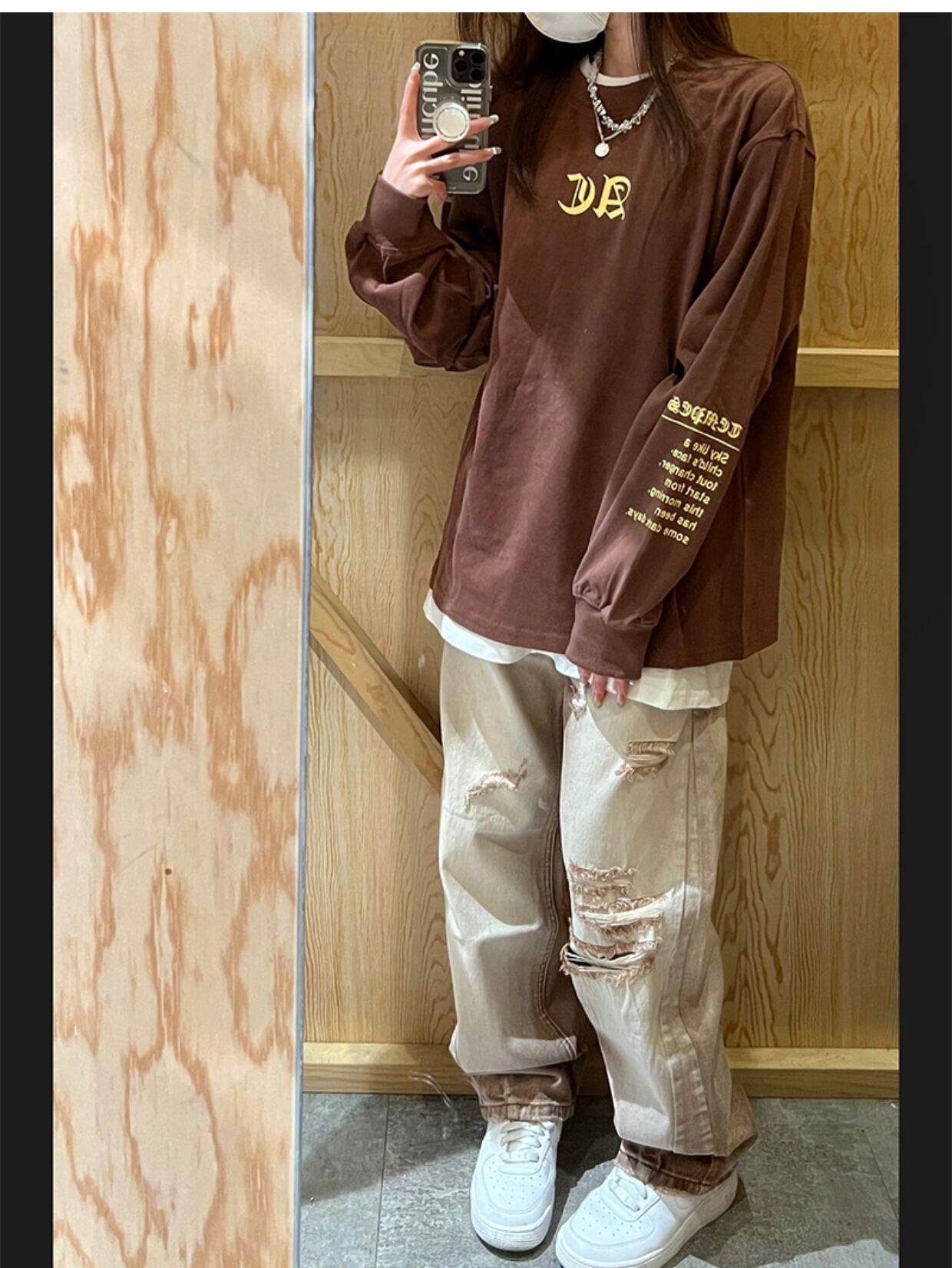 ボトムス パンツ Gパン ズボン ワイドパンツ ストレートパンツ デニムパンツ カラーパンツ ストレート ワイド ハイウエスト カラーデニム カジュアル おしゃれ お洒落 かっこいい こなれ感 ラフ メンズライク マニッシュ ボーイッシュ スポーティー 個性的 クール 存在感 レディース 学生 お出かけ 休日 アウトドア 韓国 オルチャン 体系カバー S M L XL 2XL 3XL 4XL 5XL 小さいサイズ 大きいサイズ ゆったり ゆる 茶色 ブラウン