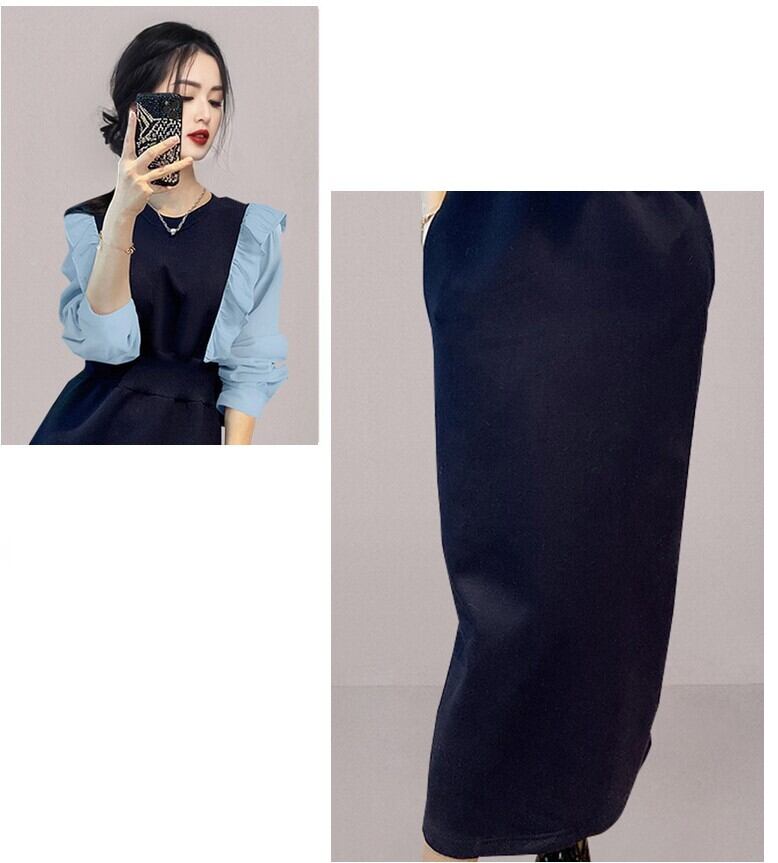 ワンピース レディース ロングワンピ S M L XL ブラック 黒 大人カラー バイカラー 切り替え 無地 秋 長袖 クルーネック フリル ロング丈 ロング アンクル丈 膝下 フレア ハイウエスト 脚長 スタイルアップ 体型カバー 着やせ ママ フェミニン ナチュラル きれいめ きれカジ カジュアル モテ ガーリー キュート 大人 大人可愛い 存在感 主役級 こなれ感 ぬけ感 デート お出かけ 休日 モード 上品 シック 学生 通学 韓国 オルチャン 清潔感 さわやか きちんと感 美ライン 美シルエット