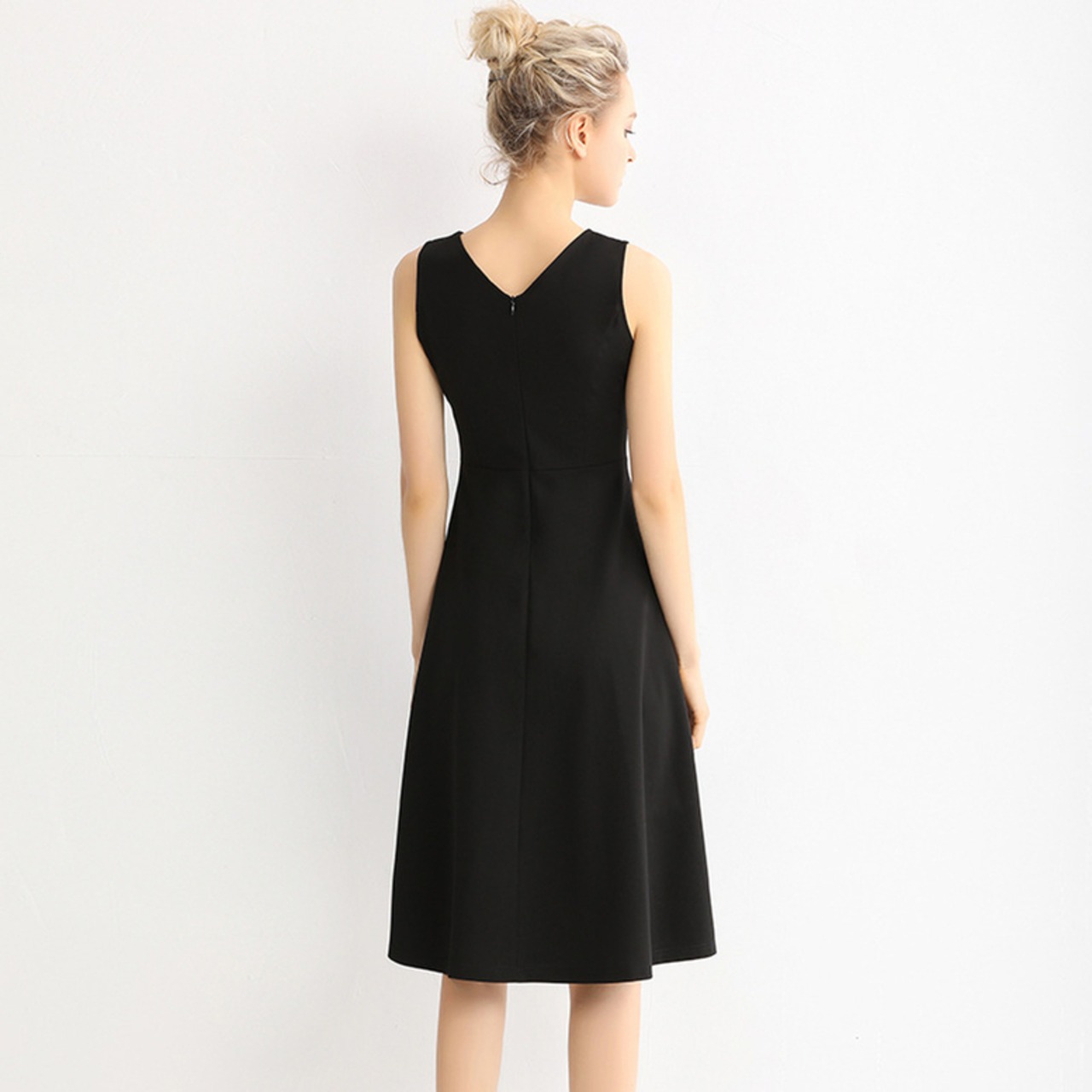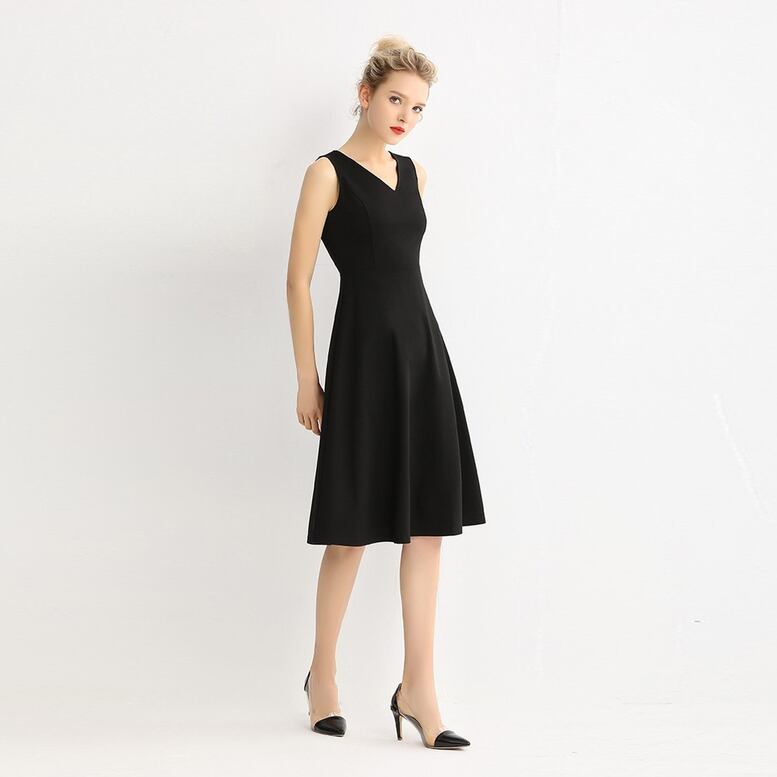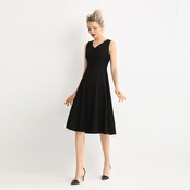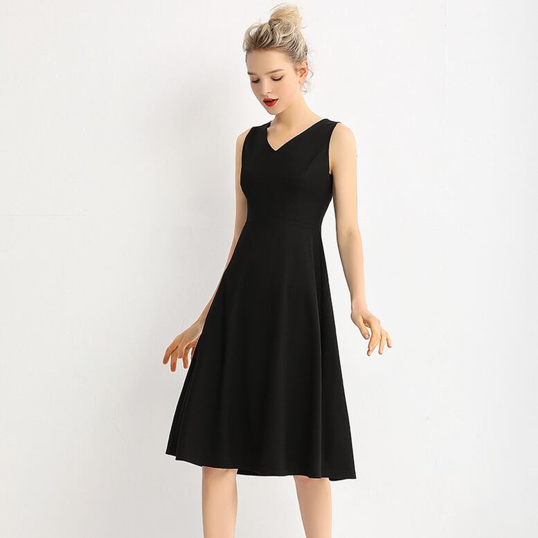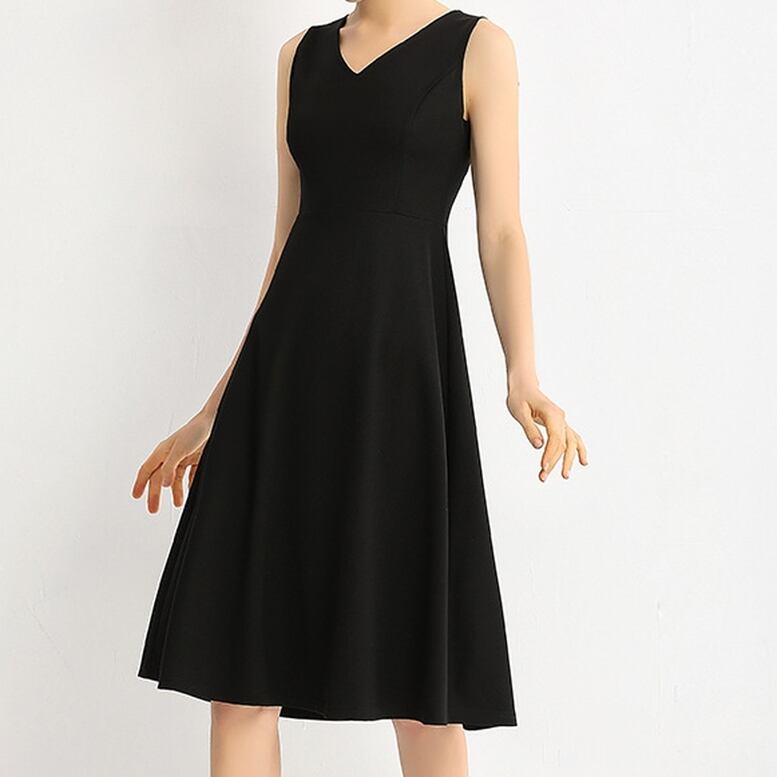 Vネックノースリーブミディアムワンピース ワンピース レディース ミディ丈ワンピース Vネック ノースリーブ 袖なし ひざ丈 フレア ドレス ハイウエスト フェミニン リュクス 黒 ブラック 大人可愛い きれいめ 上品 エレガント フォーマル ガーリー 春 夏 秋 冬 二次会 お呼ばれ 謝恩会 結婚式 披露宴 セレモニー オフィス ビジネス OL 通勤 学生 通学 デート お出かけ パーティー イベント 女子会 休日 体型カバー 美脚 脚長 モテ 普段使い 定番 トレンド ゆったり インスタ映え