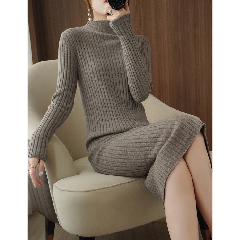 スタンドネックリブニットタイトミディアムワンピース ワンピース レディース ニットワンピース タイトワンピース リブニット ミディ丈 ニット ドレス 長袖 フィット スリム スタンドネック ハイネック 茶色 黒 ライトブラウン ベージュ アイボリー ブラック 大人可愛い きれいめ 上品 エレガント フォーマル ガーリー 春 夏 秋 冬 二次会 オフィス 通勤 通学 デート お出かけ パーティー イベント 女子会 体型カバー 美脚 トレンド ゆったり インスタ映え くすみカラー アースカラー
