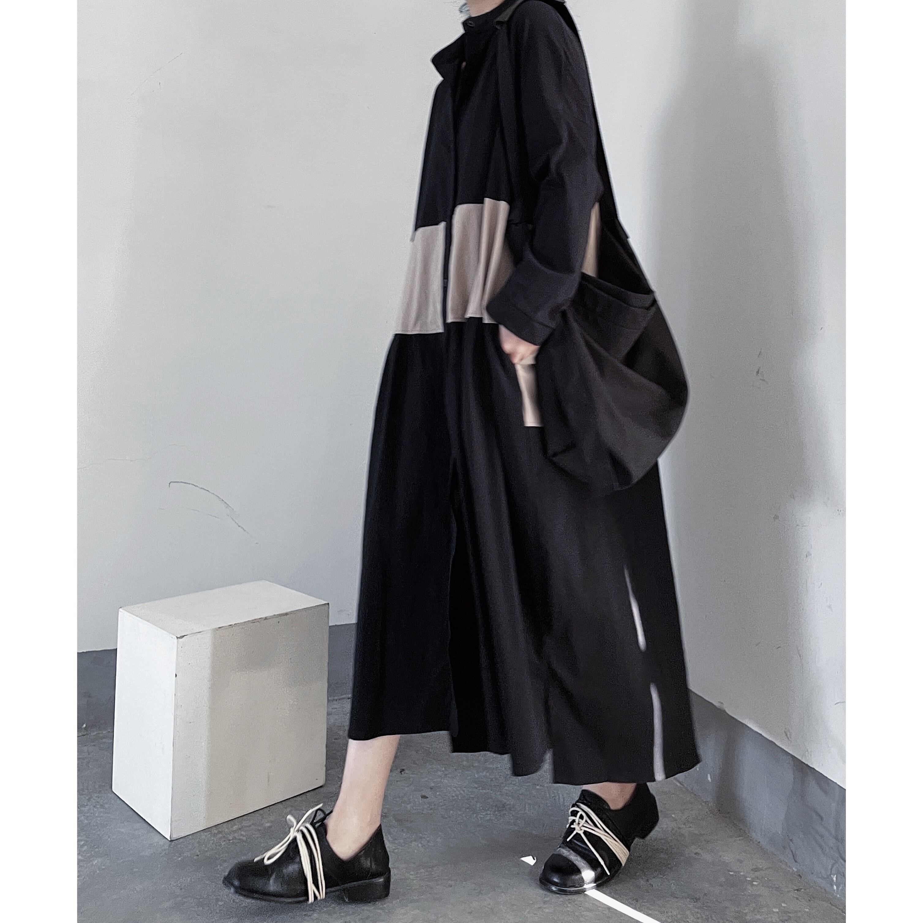ワンピース シャツワンピース ロング丈 袖あり 長袖 ドルマンスリーブ ドロップショルダー 萌袖 襟付き スタンドカラー ワイド Aライン ポケット 前開き 綿 麻 大人可愛い シンプル カジュアル おしゃれ お洒落 かっこいい 大人女子 こなれ感 ラフ ルーズ 個性的 クール モード系 主役級 存在感 抜け感 無地 春 秋 10代 20代 30代 40代 50代 60代 レディース 女性用 デート お出かけ 女子会 休日 着回し 普段使い 重ね着 体系カバー フリーサイズ ブラック ベージュ