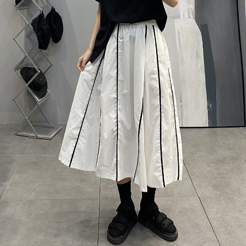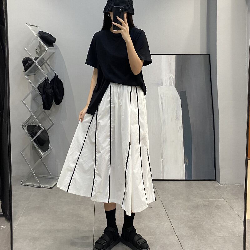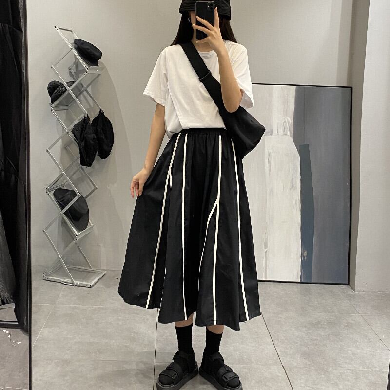 スカート フレアスカート ミモレ丈 ロング丈 フレア セミフレア ワイド Aライン ポケット ポリエステル 大人可愛い シンプル カジュアル おしゃれ お洒落 かっこいい 大人女子 こなれ感 ラフ 個性的 クール モード系 主役級 存在感 無地 柄 ライン パイピング 春 夏 秋 10代 20代 30代 40代 50代 60代 レディース 女性用 デート お出かけ 女子会 休日 イベント リゾート 旅行 着回し 普段使い 重ね着 韓国系 オルチャン ファッション コーデ フリーサイズ ホワイト ブラック