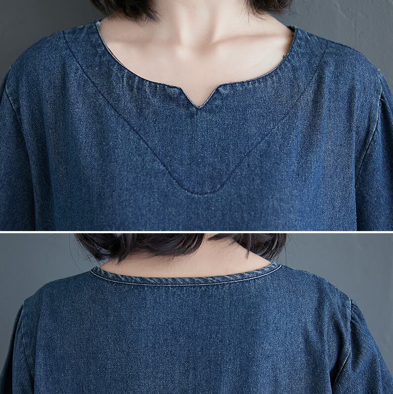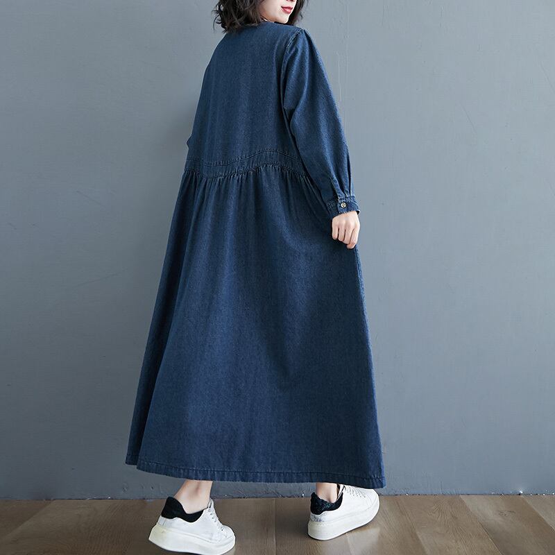 春秋 デニム ロングスカート ワンピース プルオーバー ロングスカート ワンピドレス ロング丈 袖あり 長袖 Vネック 襟なし Aライン レギュラー ふわふわ ハイウエスト デニム 異素材MIX 大人可愛い シンプル 大人 お洒落 レトロ エスニック 大人女子 ラフ キュート エレガント 無地 春 秋 30代 レディース 女性用 ママ オフィス ビジネス OL 通勤 学生 通学 お出かけ 女子会 お泊まり パーティー イベント ホテル 着回し スタイル インスタ映え M L XL 2XL ブルー