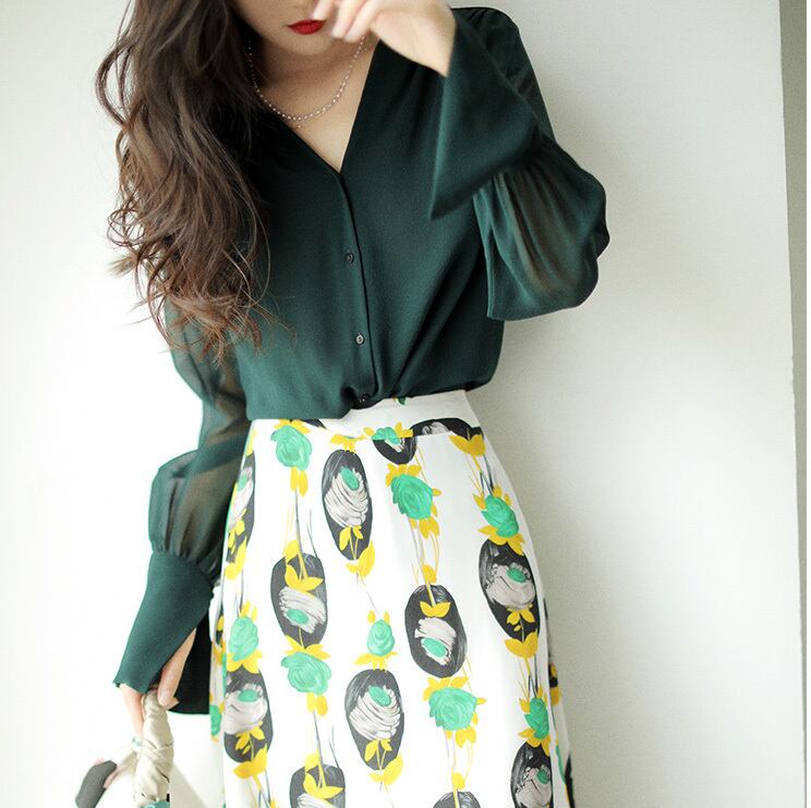 春 シャツ センス トップス デート ブラウス 上着 ショート丈 袖あり 長袖 Vネック 襟なし ストレート レギュラー ふわふわ 前開き 透け感 ボタン 異素材MIX シルク かわいい きれいめ カジュアル 大人 おしゃれ レトロ 大人可愛い こなれ感 ラブリー クール セクシー 無地 春 レディース 女性用 ママ オフィス ビジネス OL 通勤 学生 通学 お出かけ 女子会 お泊まり パーティー イベント ホテル 普段使い ファッション インスタ映え S M グリーン