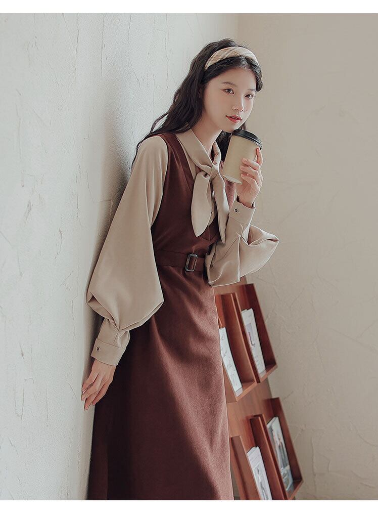 ワンピース レトロ リボン 長袖 袖あり かわいい 大人可愛い きれいめ シンプル カジュアル 大人 上品 おしゃれ お洒落 かっこいい レトロ アジアン エスニック エキゾチック 大人可愛い 大人女子 こなれ感 ラフ キュート ガーリー ルーズ 個性的 クール モード系 セクシー エレガント モダン 主役級 存在感 とろみ感 抜け感 春 秋 10代 20代 30代 女性用 ママ デート お出かけ 公園デビュー 女子会 休日 アウトドア 旅行 ガーデン 着回し 普段使い 重ね着 韓国ファッション 韓国