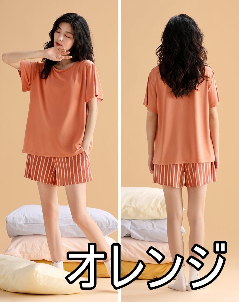 パジャマ 冷感 6色 上下セット 半袖 レディース ハーフパンツ ショートパンツ ストライプ シンプル カジュアル 無地 くすみカラー ラウンドネック ゆったり 大きめ 大きいサイズ 体型カバー М L XL 2XL ボーダー 緑 グリーン 青 ブルー ネイビー オレンジ グリーン 緑 寝巻 部屋着 ルームウェア リラックス ポケット ウエストゴム ラフ 20代 30代 40代 50代 夏 伸縮性 涼しい 冷たい ウエスト調整 調節 旅行 お泊まり メンズライク クール 通気性 薄手 お洒落 オシャレ
