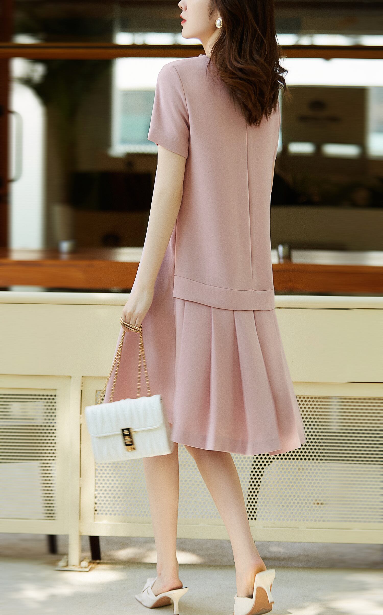 夏 フレンチ ワンピース スカート ワンピース ミディスカート ワンピドレス ミディアム丈 袖あり 半袖 ラウンドネック 襟なし タイト タイプA ファスナー ポリエステル 異素材MIX かわいい きれいめ 大人 上品 お洒落 かっこいい レトロ 大人女子 ガーリー エレガント モダン 無地 春 20代 30代 レディース 女性用 ママ オフィス ビジネス OL 通勤 学生 通学 デート 休日 パーティー リゾート 旅行 レストラン 着回し コーデ インスタ映え S M L XL ピンク