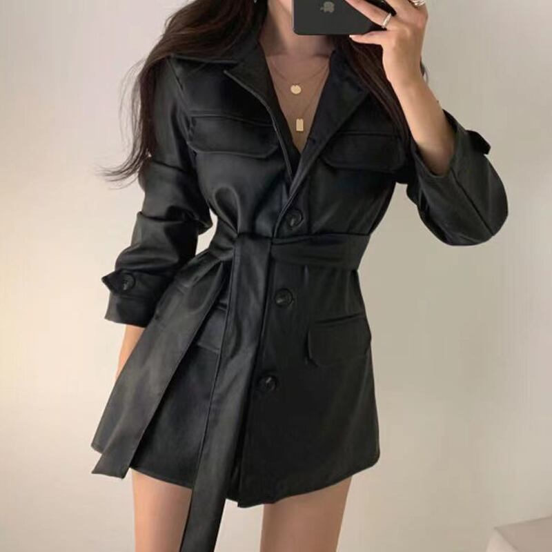 アウター ジャケット ミドル丈 長袖 ストレート ベルト ウエストリボン 前開き ボタン レザー PU 大人可愛い きれいめ シンプル カジュアル 大人 上品 おしゃれ お洒落 かっこいい レトロ 大人女子 こなれ感 ラフ メンズライク ボーイッシュ スポーティー ラブリー ルーズ 個性的 クール モード系 モダン 存在感 無地 春 秋 冬 20代 30代 レディース 女性用 お出かけ 休日 普段使い 重ね着 韓国 ファッション コーデ スタイル 楽ちん S M L 黒 茶色