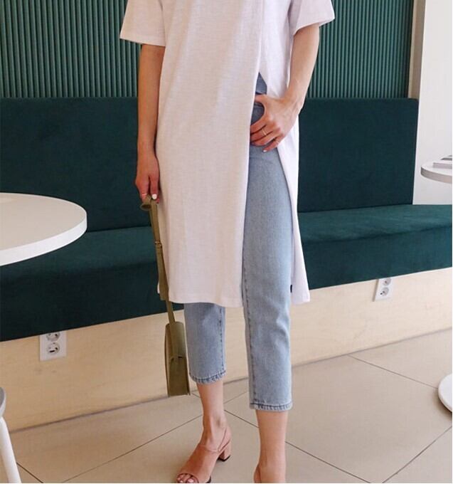 ざっくりと大きくスリットが入ったTシャツワンピース。