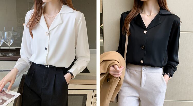春秋 シフォン トップス トップス ブラウス ショート丈 袖あり 長袖 Vネック 襟付き スリム レギュラー ふわふわ 前開き 透け感 ボタン 異素材MIX 大人可愛い シンプル お洒落 レトロ 大人女子 こなれ感 クール エレガント 無地 夏 秋 20代 30代 レディース 女性用 ママ オフィス ビジネス OL 通勤 お出かけ お泊まり 休日 パーティー イベント ホテル 着回し コーデ インスタ映え S M L XL 2XL ホワイト ブラック
