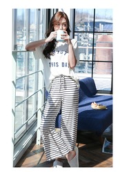 シンプルなロゴTシャツとボーダー柄パンツのセットです。