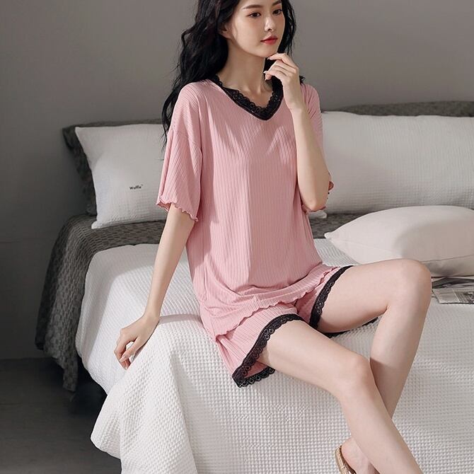 パジャマ 7色 上下セット レディース 半袖 ショートパンツ Vネック レース 無地 パステルカラー 2点セット ハーフパンツ ズボン ゆったり 大きめ 大きいサイズ М L XL 2XL 3XL ラフ 体型カバー 着痩せ ウエストゴム バイカラー お洒落 オシャレ セクシー かわいい 大人可愛い レッド 赤 オレンジ ピンク 紫 パープル 水色 ブルー ブラック 黒 ベージュ くすみカラー 寝巻 部屋着 ルームウェア リラックス 20代 30代 40代 プレゼント ギフト 旅行 お泊まり モテ お揃い