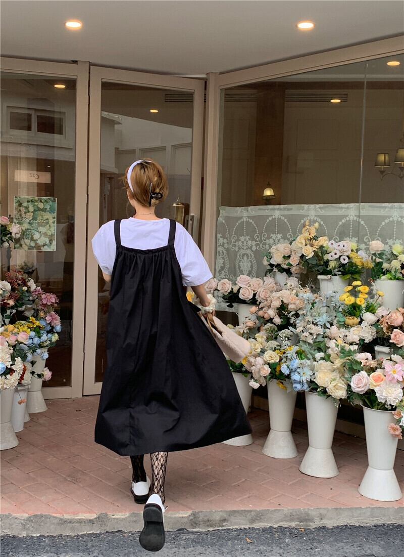 ワンピース フレアワンピース 膝下 ミモレ ミモレ丈 袖なし スクエアネック 襟なし フレア ワイド かわいい 大人可愛い シンプル カジュアル こなれ感 ラフ キュート ルーズ 無地 オールシーズン シーズンレス レディース 女性用 ママ マタニティ お出かけ 公園デビュー 休日 着回し 重ね着 韓国 オルチャン 楽ちん 体系カバー M L XL 2XL 3XL ゆったり ゆる 黒 ブラック 茶色 ブラウン
