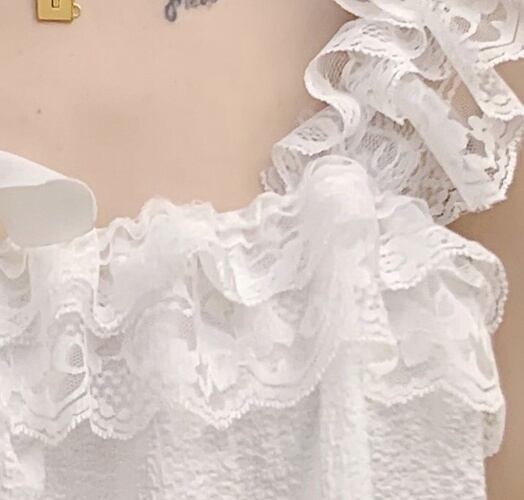 レースとフリルをたっぷり使用した、ガーリーなルームウェアです。