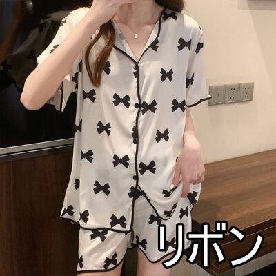 パジャマ 上下セット 5色 半袖 レディース 無地 花柄 リボン 5分袖 ショートパンツ ハーフパンツ 前開き スカラップ Vネック 小花 ブーケ フラワー サテン 光沢 シンプル 無地 カジュアル きれいめ 上品 エレガント かわいい 大人可愛い 大人女子 お洒落 オシャレ ゆったり 大きめ 大きいサイズ М L XL ゆる ワイド 体型カバー白 ホワイト ベージュ 黒 ブラック 青 ブルー 20代 30代 40代 50代 春 夏 薄手 寝巻 部屋着 リラックス ルームウェア 旅行 お泊まり モテ 映え