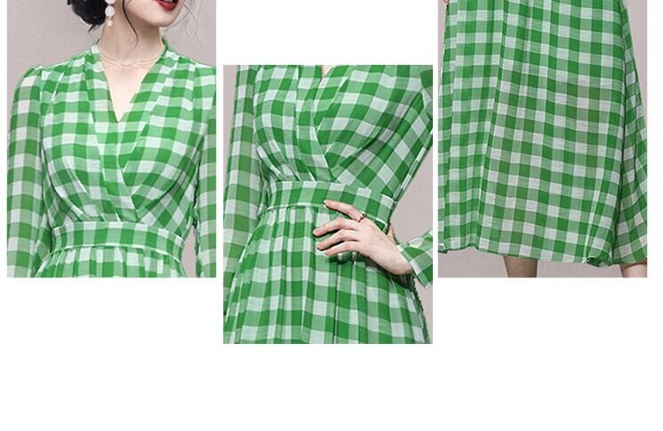 ワンピース レディース ロングワンピ S M L XL グリーン チェック 春 秋 長袖 Vネック ロング丈 ロング ミモレ丈 膝下 フレア ハイウエスト 脚長 スタイルアップ 体型カバー 着やせ ママ フェミニン ナチュラル きれいめ きれカジ カジュアル モテ ガーリー キュート 大人 大人可愛い 存在感 主役級 こなれ感 ぬけ感 デート お出かけ 休日 スタイリッシュ 学生 通学 韓国 オルチャン 清潔感 さわやか きちんと感 美ライン 美シルエット 上品 エレガント シンプル 王道 定番 万能