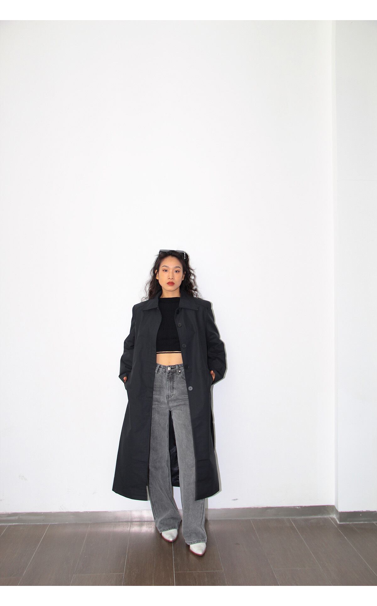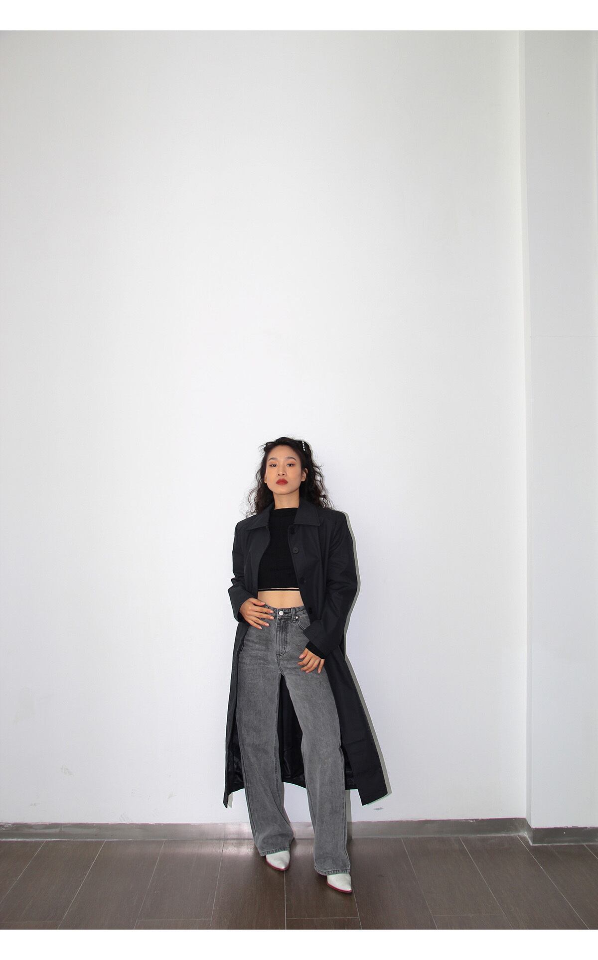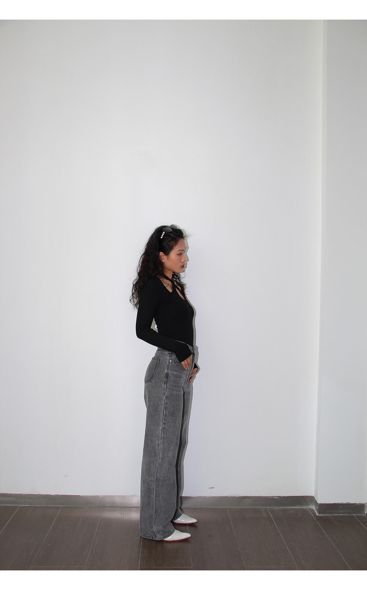 ルーズなサイズ感が魅力のハイウエストデニムパンツ。