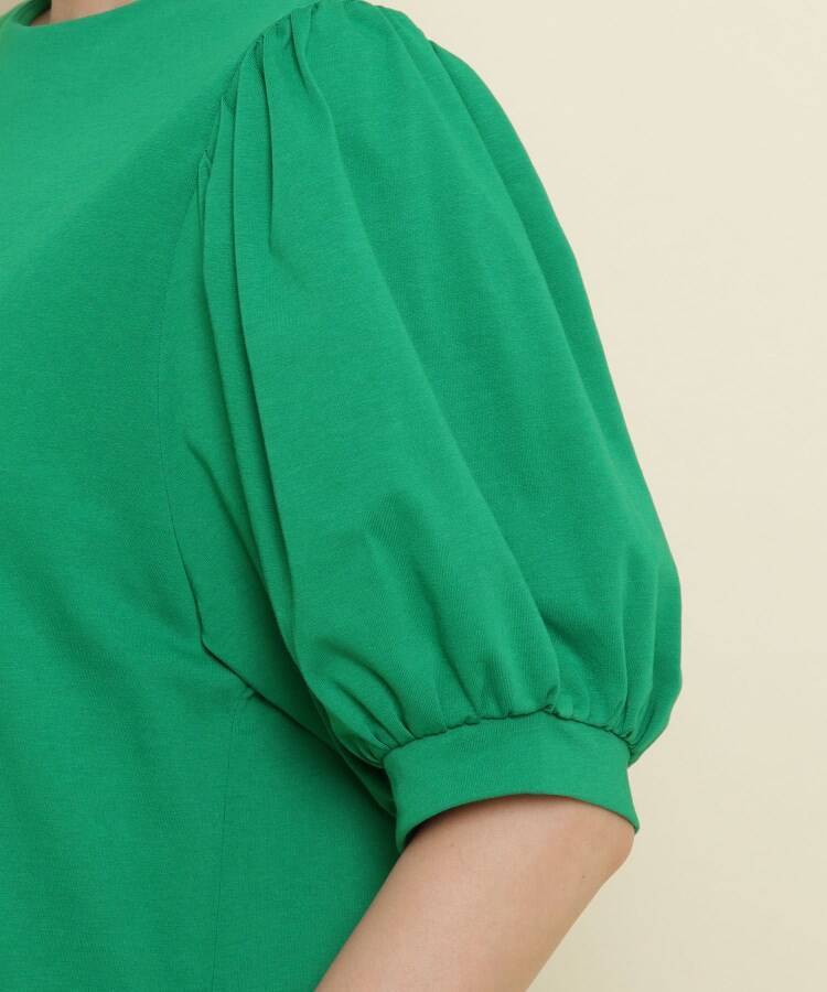 肩のタック切替&甘すぎないきれいめパフスリーブのトップス。