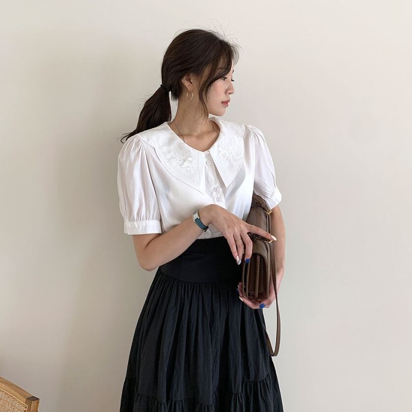 たっぷり生地を使用したAラインのデザインは、女性らしくガーリーな印象。