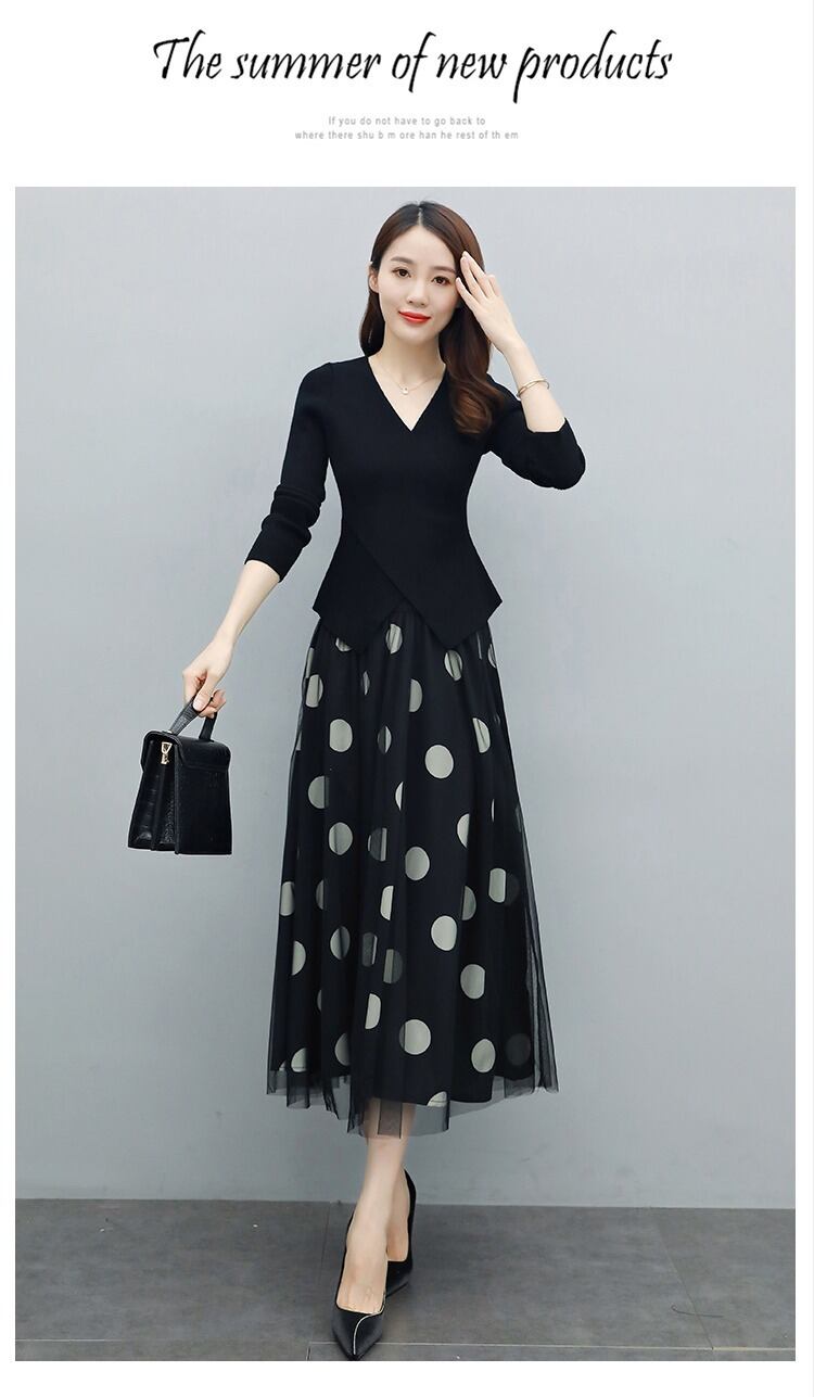 上下セット 2点セット ツーピース トップス スカート セットアップ カットソー フレアスカート チュールスカート 膝下 ミモレ ミモレ丈 袖あり 長袖 Vネック 襟なし フレア Aライン チュール シフォン 透け感 シースルー かわいい 大人可愛い きれいめ 上品 おしゃれ 大人女子 こなれ感 キュート モード系 エレガント フォーマル ドット柄 水玉 レディース 女性用 デート 休日 着回し コーデ モテ S M L XL 2XL 大きいサイズ 黒 ブラック