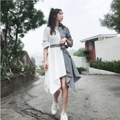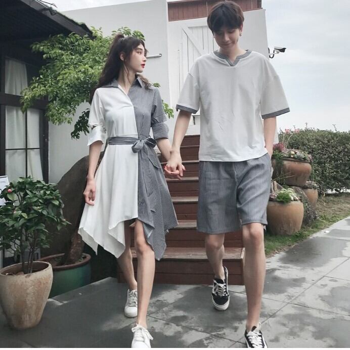 ワンピース デート シャツワンピース フレアワンピース 膝丈 ひざ丈 袖あり 5分袖 五分袖 Vネック 襟付き 角襟 フレア Aライン 切り替えデザイン ドッキング ウエストマーク ウエストリボン 切り替えデザイン ドッキング ハイウエスト 前開き かわいい シンプル カジュアル おしゃれ お洒落 こなれ感 ラブリー キュート 個性的 主役級 柄 ストライプ レディース 女性用 デート お出かけ 休日 韓国 韓国系 オルチャン S M L XL 2XL 3XL 大きいサイズ 白 ホワイト 灰色 グレー