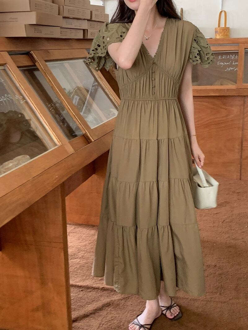 ワンピース レース 2色 ティアードワンピース レディース Vネック ロング丈 マキシ丈 Aライン フレア くすみカラー ギャザー エレガント ゴージャス 高級感 上品 きれいめ お洒落 オシャレ かわいい 大人可愛い マキシワンピース 夏 大人女子 こなれ感 ラフ リゾート パーティー お呼ばれ 普段着 女子会 デート モテ 買い物 お出かけ ゆったり 体型カバー 着痩せ デコルテ 鎖骨 華奢 小顔 すっきり 個性派 個性的 ルーズ 抜け感 こなれ感 トレンド 韓国 流行 20代 30代 40代 50代