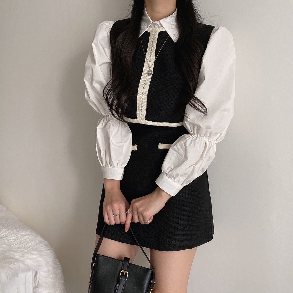 セットアップ 3点セット ブラウス スカート ビスチェ レディース バイカラー ニット ミニスカート ミニ丈 ショート丈 お買い得 お得 無地 モノクロ スタンドカラー パフスリーブ 2段 ボリューム袖 膝上 トレンド 韓国 流行 SNS 映え インスタ かわいい 大人可愛い お洒落 オシャレ 主役 存在感 上品 きれいめ 高級感 ガーリー ハイウエスト 美脚 脚長 10代 20代 30代 量産型 着回し カジュアル シック モード ガーリー ラフ こなれ感 タイト スリム 細身 体型カバー 楽ちん