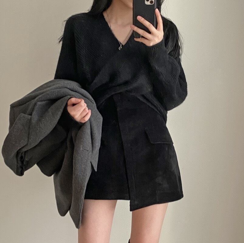 ニットトップスとミニスカートのセットです。