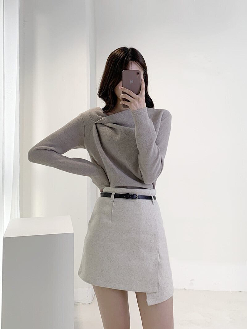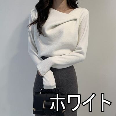 トップス ニットソー 3色 長袖 レディース ニット カットソー くすみカラー アシンメトリー 薄手 春 秋 冬 タイト スリム 細身 ホワイト 白 青 ブルー ベージュ グレー 無地 シンプル カジュアル きれいめ 上品 エレガント オシャレ お洒落 かわいい 大人可愛い 高級感 セーター 斜め デザイン タック こなれ感 着回し 20代 30代 40代 50代 ゆったり 体型カバー ボリューム 鎖骨 デコルテ 華奢 抜け感 シック モード 個性派 個性的 とろみ 体型カバー 映え SNS 休日 買い物