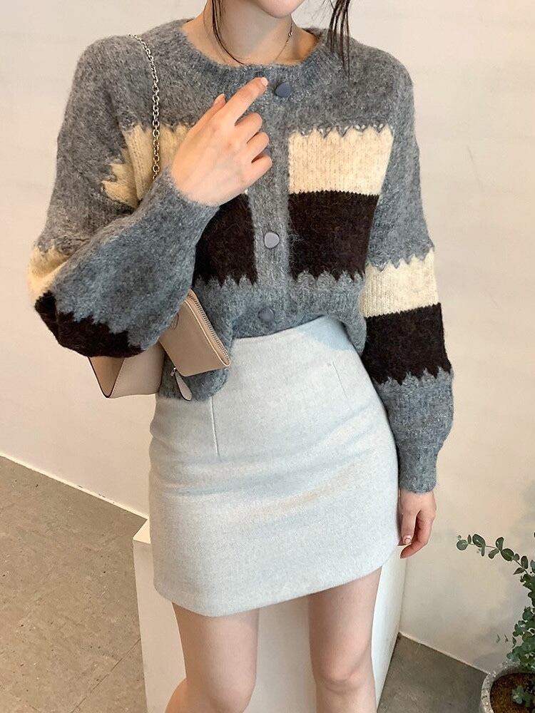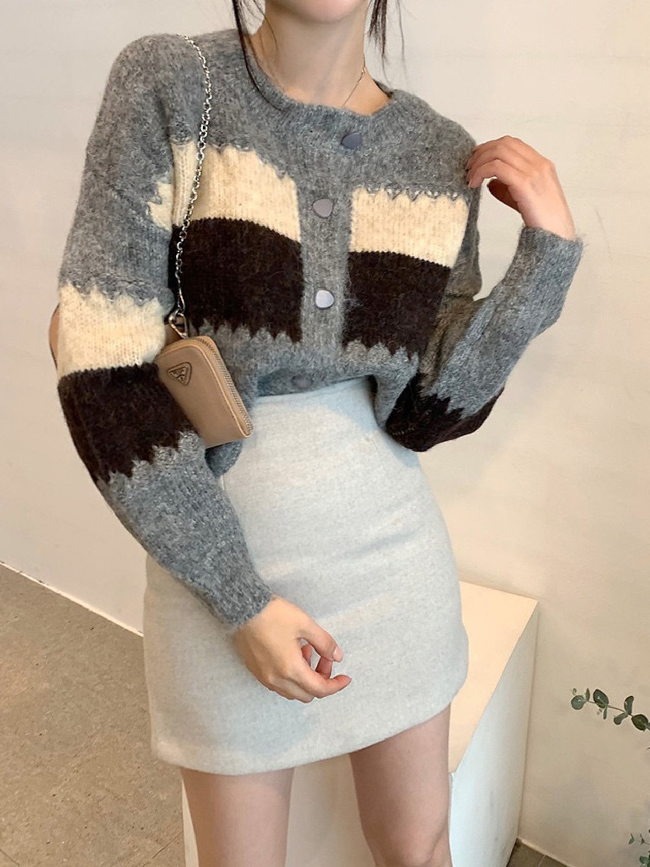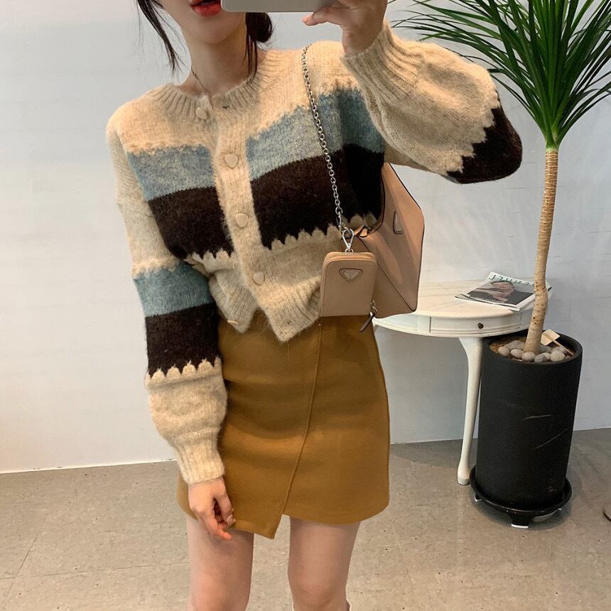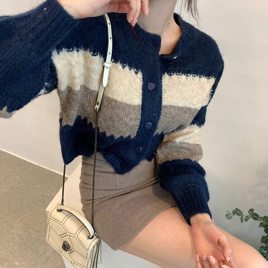 トップス カーディガン 4色 ショート丈 レディース 長袖 ボーダー 前開き ラウンドネック 太め くすみカラー ベージュ ピンク ネイビー 紺 グレー 灰色 オシャレ お洒落 個性派 個性的 アート レトロ ヴィンテージ アンティーク トレンド 流行 春 秋 ニット 暖かい 脚長 美脚 体型カバー かわいい 大人可愛い シック エレガント ラフ こなれ感 30代 40代 50代 韓国 デート 女子会 休日 お出かけ 買い物 重ね着 普段着 防寒 タイト スリム トレンドライク