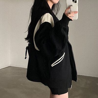アウター ジャケット パーカー オーバーサイズ レディース ゆったり 大きめ 体型カバー 着痩せ 細見え 長袖 モノクロ ブラック ホワイト 黒 白 クール かっこいい ボーイッシュ メンズライク スポーティー 前開き ファスナー ポケット バイカラー 春 秋 冬 かわいい 大人可愛い オシャレ お洒落 シンプル カジュアル 韓国 トレンド 流行 萌え袖 10代 20代 30代 ドロップショルダー モテ デート 女子会 映え SNS スポーツ お出かけ 買い物 公園 個性的 個性派 モード シック 学生